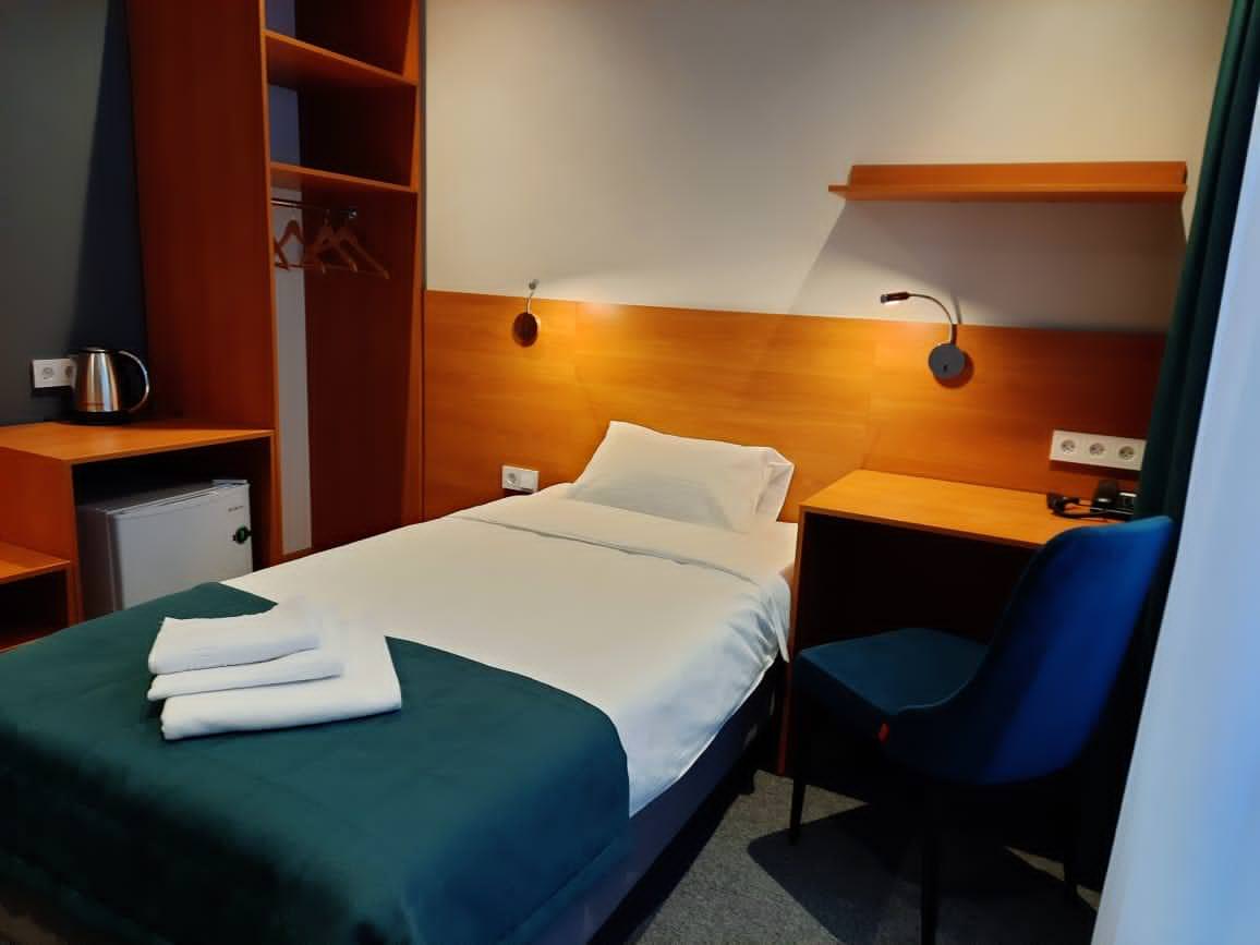 Гостиница состоит из 4 этажей. На нижнем этаже находится ресторан. Номера оборудованы всем нужным для комфортного проживания. В них есть кондиционер, ТВ, холодильник и ванная комнатка с душем и феном.