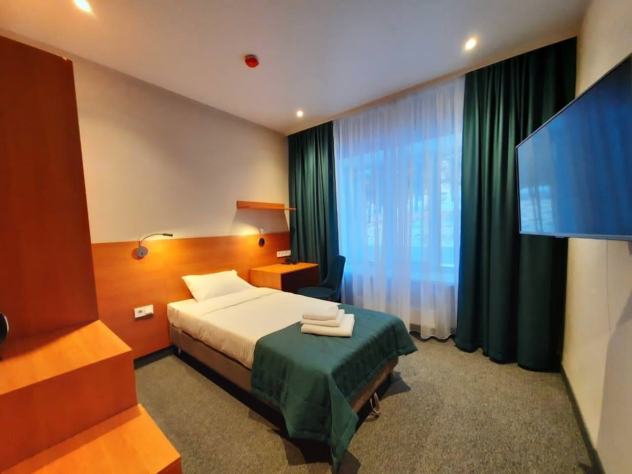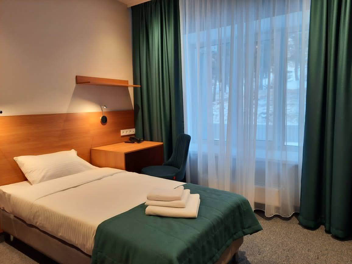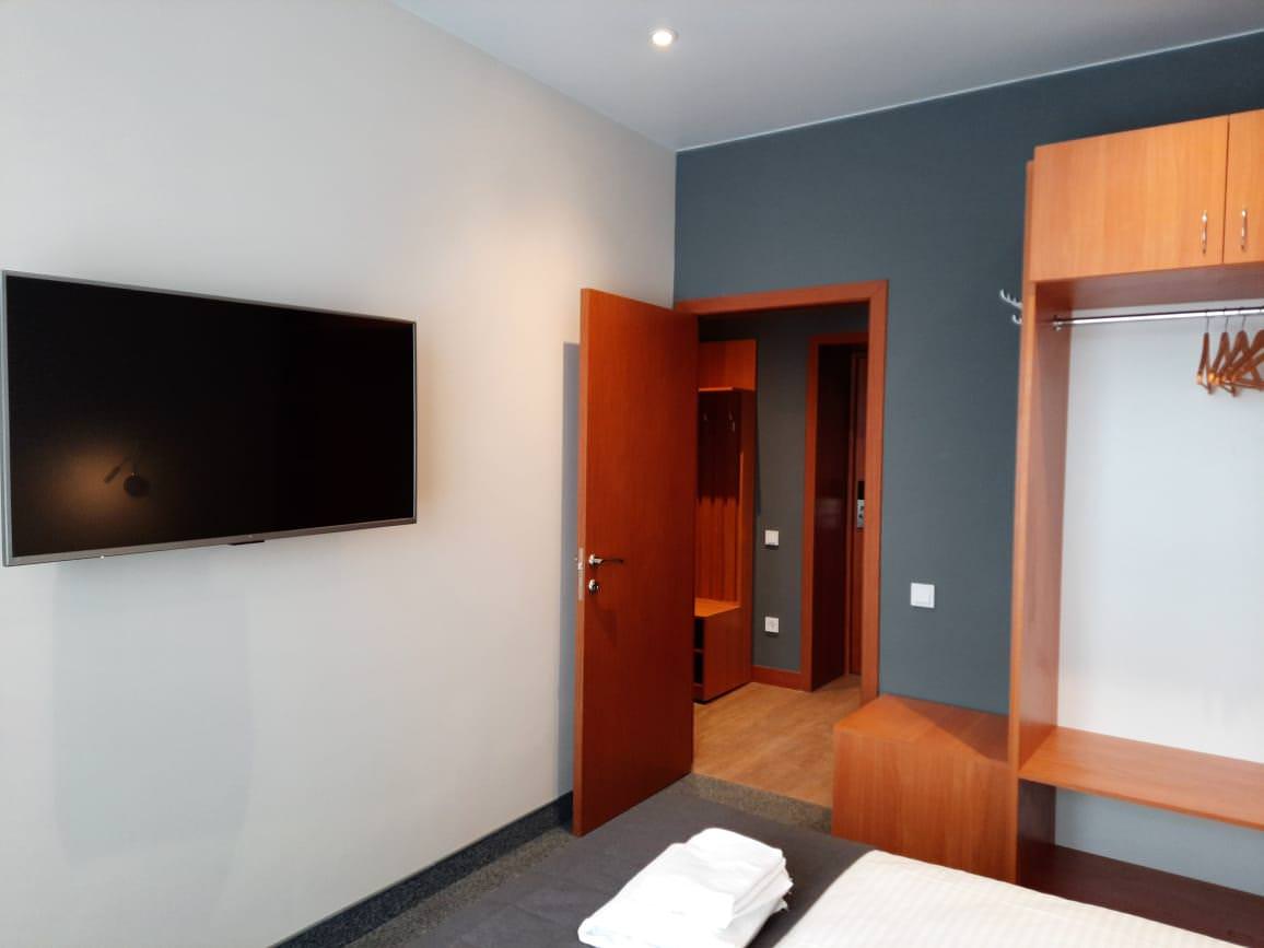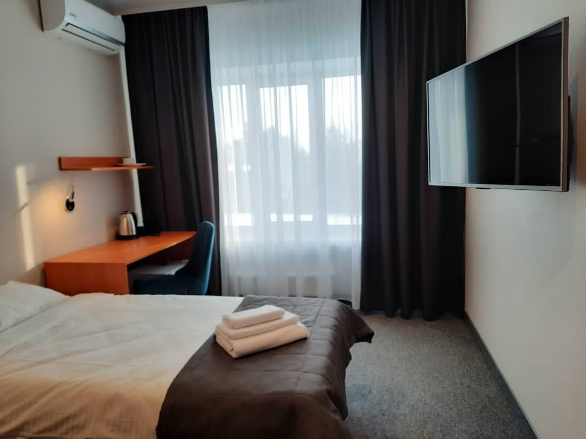 В номере 1 одноместная кровать, шкаф для одежды, кресло, рабочий стол, кондиционер, плазменный ТВ, холодильник, чайник, чайная пара. Ванная комната общая на 2 номера.